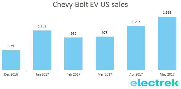 Chevy Bolts hit a sales record high in June with 1,642 units in some of the United States.